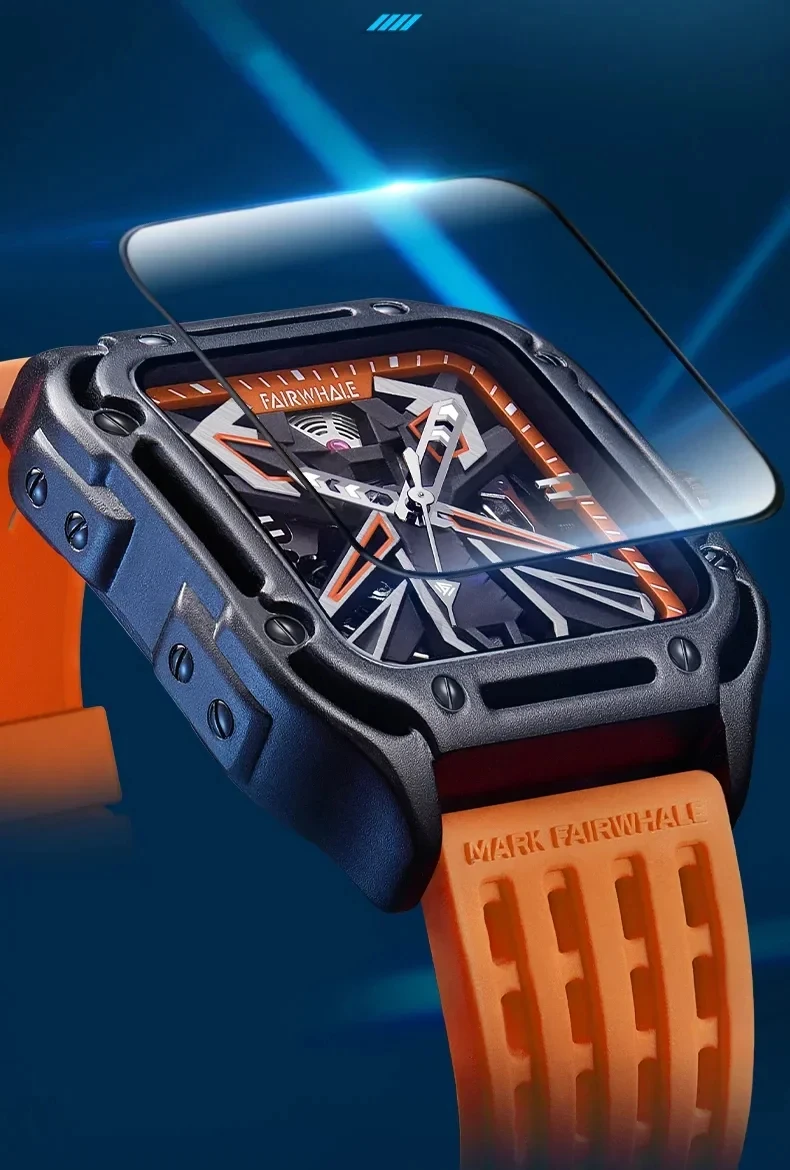 Mark Fairwhale Brand Cool Black Men's Mechanical Watches Sports Silicone Strap Waterproof Fashion Top Automatic Watch for Men